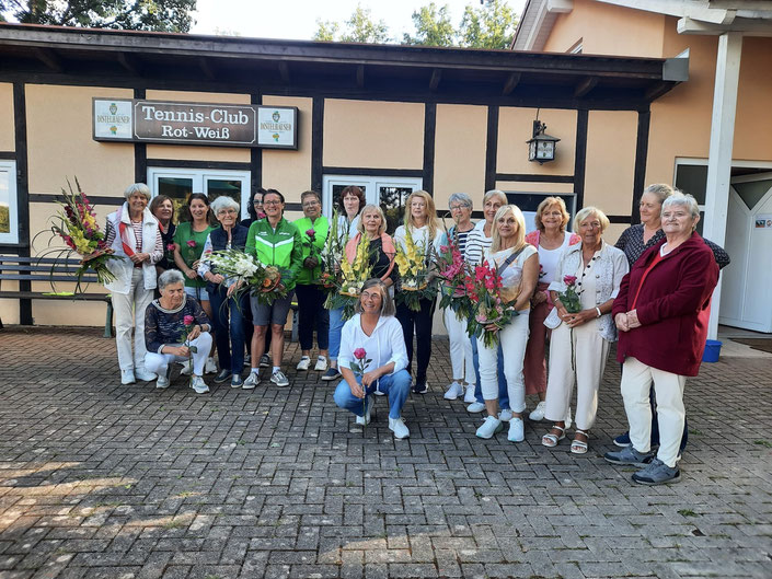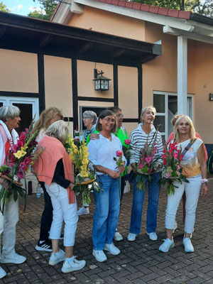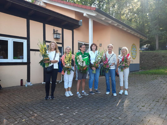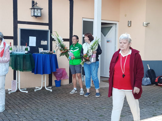 Christina Striehl wurde mit einem kleinen Geschenk für 15-malige Teilnahme am Turnier gedankt. Ein besonderer Dank ging an Ute Breymann, die Tochter von Thea Schalamun, die für jede Spielerin und Helferin eine wunderschöne Rose mitgebracht hatte. Die drei ersten Paare wurden mit einem tollen Blumengebinde belohnt, welches sie spendete. Die Siegerinnen erhielten von den Seniorinnen ein nützliches Geschenk.